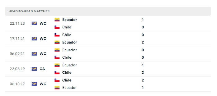 Lịch sử đối đầu Chile vs Ecuador
