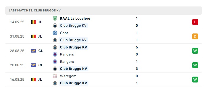 • Phong độ gần đây Club Brugge