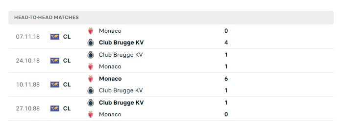 Lịch sử đối đầu Club Brugge vs Monaco