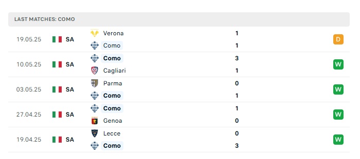 - Phong độ gần đây Como