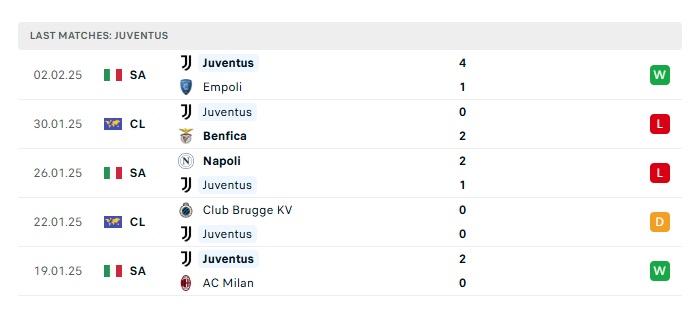 Theo ghi nhận, phong độ thi đấu trong thời gian qua của Juventus dù không tốt nhưng vẫn vượt xa đối thủ Como. Tính trong 5 trận đấu gần nhất của đội chủ nhà, họ chỉ có được đúng 1 chiến thắng, 1 hòa và thua 3. Trong khi đó thì Juventus đang có 2 thắng, 3 hòa và chỉ thua 2 trong 7 trận gần nhất. Như vậy, tuy sẽ gặp khó khăn nhưng đội khách vẫn tự tin có được ít nhất là 1 chiến thắng tối thiểu.