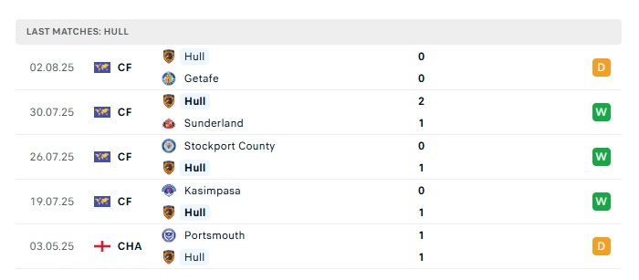 - Phong độ gần đây Hull City