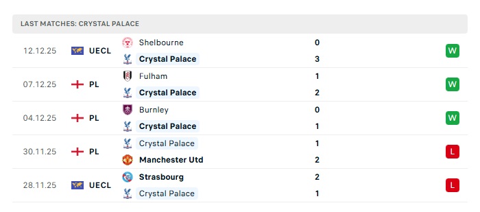 • Phong độ gần đây Crystal Palace