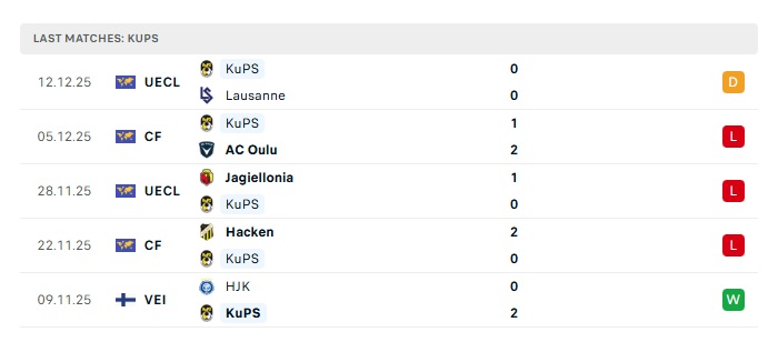 • Phong độ gần đây KuPS