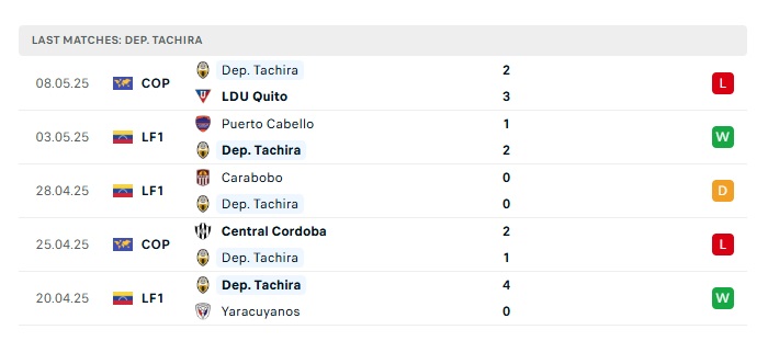 Phong độ gần đây Dep.Tachira vs Cordoba