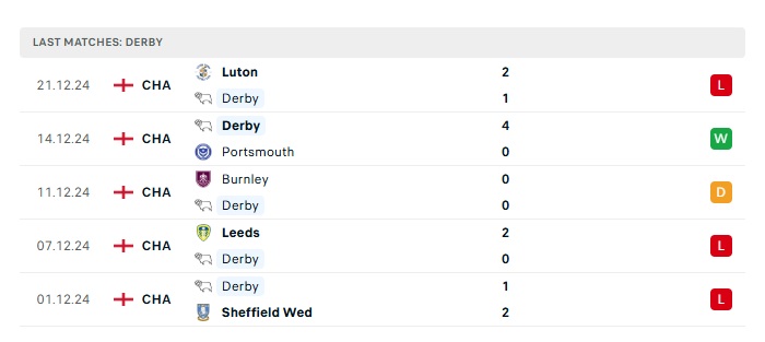 - Phong độ gần đây Derby