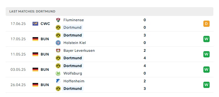 • Phong độ gần đây Dortmund