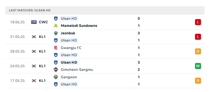 • Phong độ gần đây Ulsan Hyundai