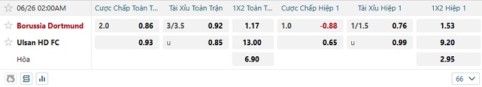 Bảng tỷ lệ kèo nhà cái Dortmund vs Ulsan Hyundai
