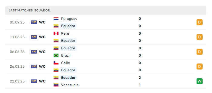 • Phong độ gần đây Ecuador