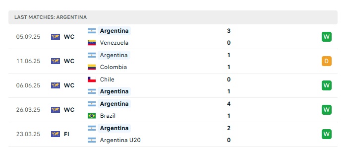 • Phong độ gần đây Argentina