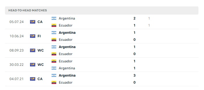 Lịch sử đối đầu Ecuador vs Argentina