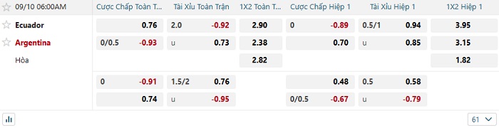Soi kèo châu Á, kèo Ecuador vs Argentina
