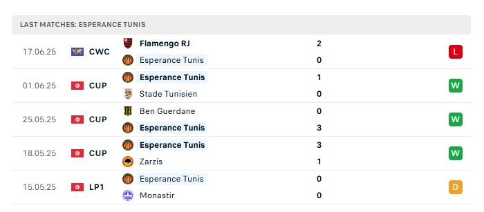 - Phong độ gần đây Esperanse ST