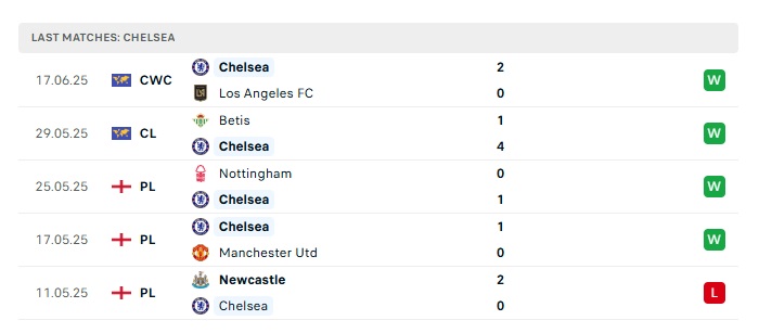 - Phong độ gần đây Chelsea