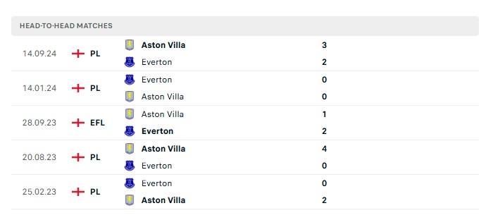 - Kèo tỷ số H2 Everton vs Aston Villa: 1-1