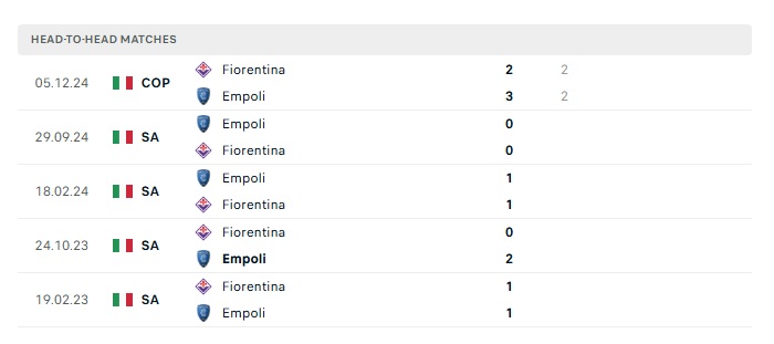 Lịch sử đối đầu Fiorentina vs Empoli
