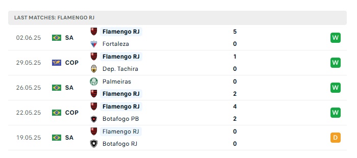 Phong độ gần đây Flamengo  vs Esperanse ST