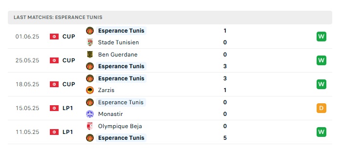 Esperanse ST: Memmiche; Ben Ali, Ben Hamida (c), Jelassi, Tougaï; Aholou, Tka; Konaté, Sasse, Belaïli; Mokwana.