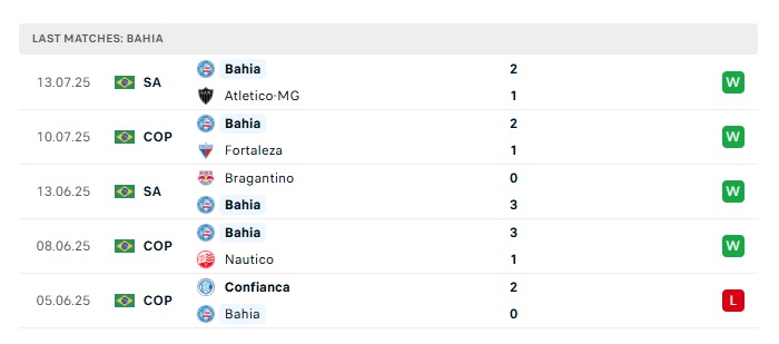 - Phong độ gần đây Bahia