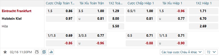 Soi kèo châu Á, kèo Frankfurt vs Holstein Kiel