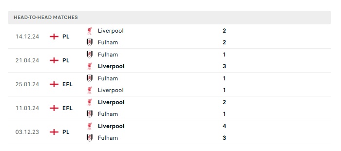 • Kèo tỷ số H2 Fulham vs Liverpool: 0-2