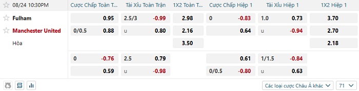 Soi kèo châu Á, kèo Fulham vs Man Utd