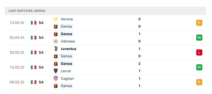 - Phong độ gần đây Genoa