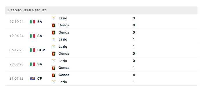 Lịch sử đối đầu Genoa vs Lazio