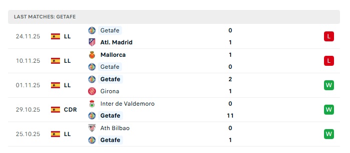 • Phong độ gần đây Getafe