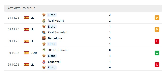 • Phong độ gần đây Elche