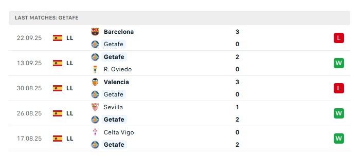 - Phong độ gần đây Getafe