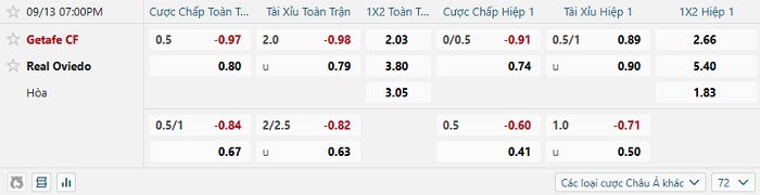 Soi kèo châu Á, kèo Getafe vs Real Oviedo