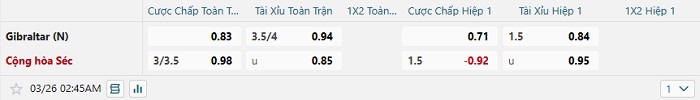 Soi kèo châu Á, kèo Gibraltar vs Czech