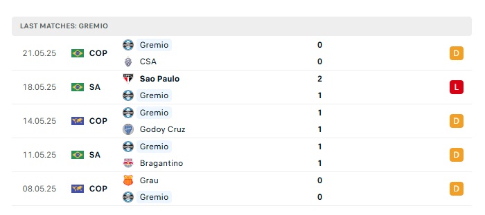 - Phong độ gần đây Gremio