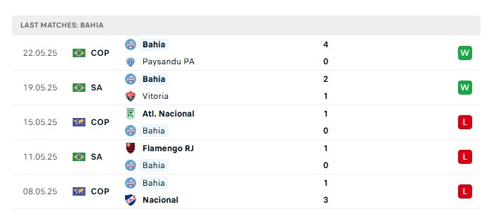 - Phong độ gần đây Bahia