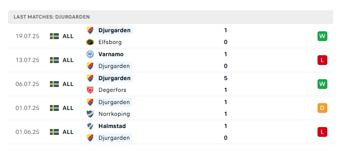 - Phong độ gần đây Djurgardens