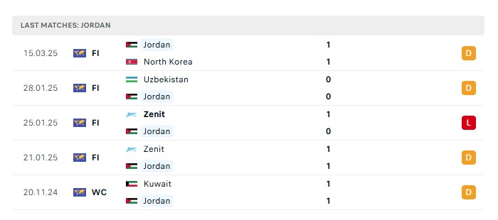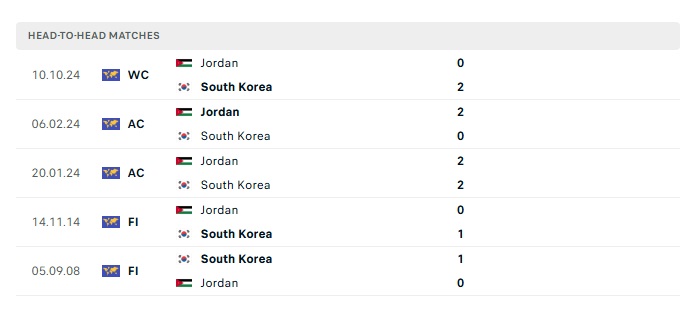 Phong độ gần đây Hàn Quốc vs Jordan