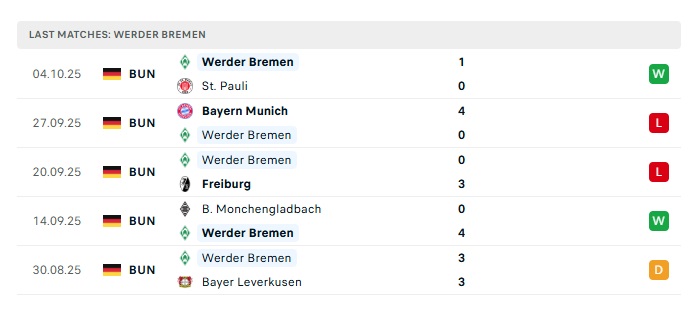 Phong độ gần đây Heidenheim vs Werder Bremen