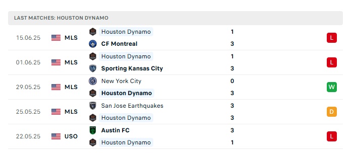 • Phong độ gần đây Houston Dynamo