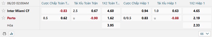 Bảng tỷ lệ kèo bóng đá hôm nay Inter Miami vs Porto