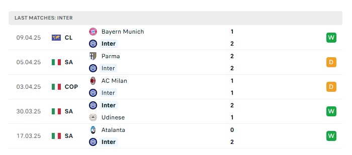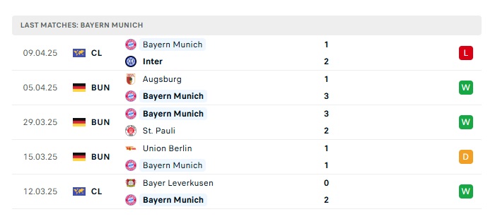 Phong độ gần đây Inter Milan vs Bayern Munich