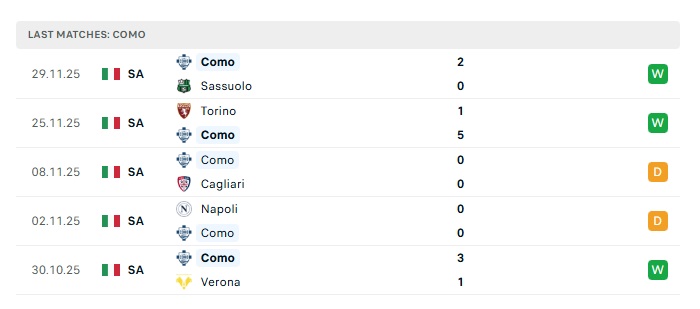 - Phong độ gần đây Como