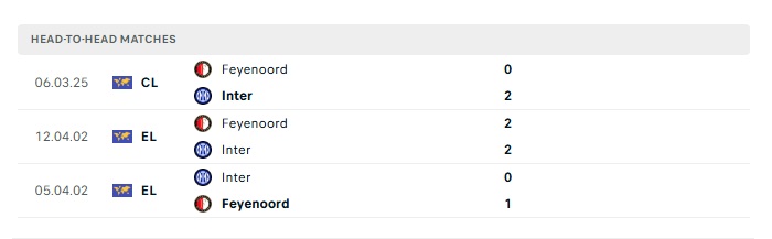 Lịch sử đối đầu Inter Milan vs Feyenoord