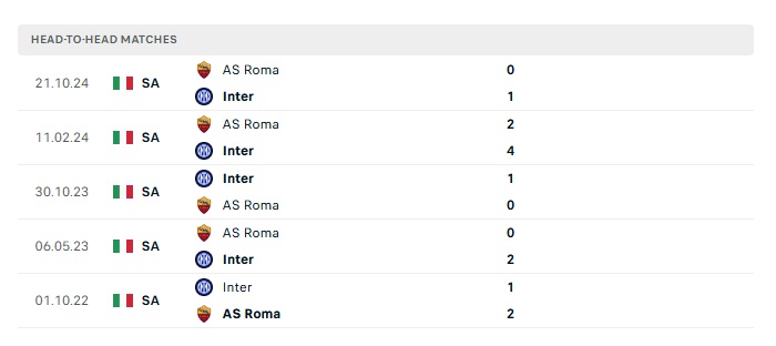 Lịch sử đối đầu Inter Milan vs Roma