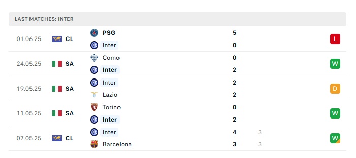 - Phong độ gần đây Inter Milan