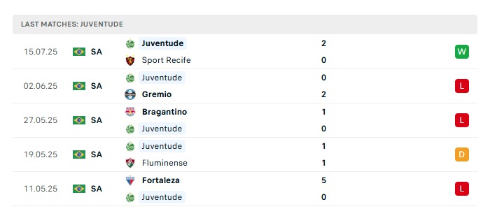- Phong độ gần đây Juventude