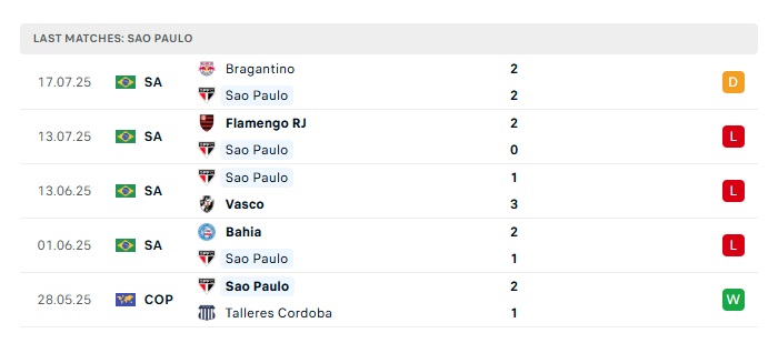 - Phong độ gần đây Sao Paulo