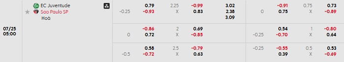 Soi kèo châu Á, kèo Juventude vs Sao Paulo