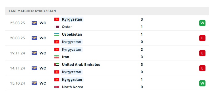 - Phong độ gần đây Kyrgyzstan